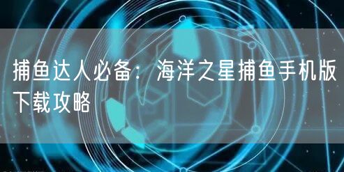 分享海洋之星捕鱼手机版的免费下载链接,提供游戏攻略,让玩家快速掌握游戏技巧,享受捕鱼游戏的休闲娱乐。