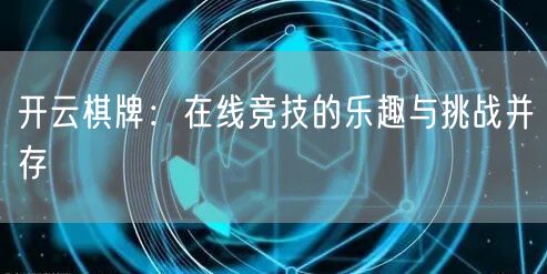 开云棋牌:在线竞技的乐趣与挑战并存